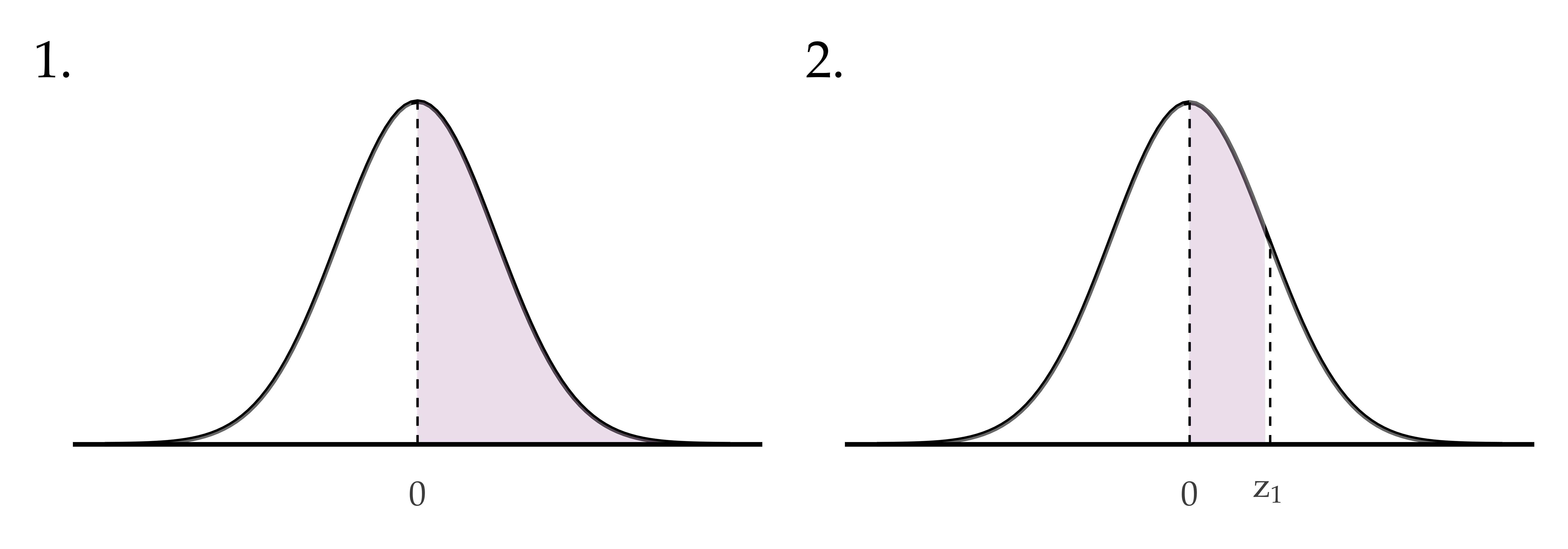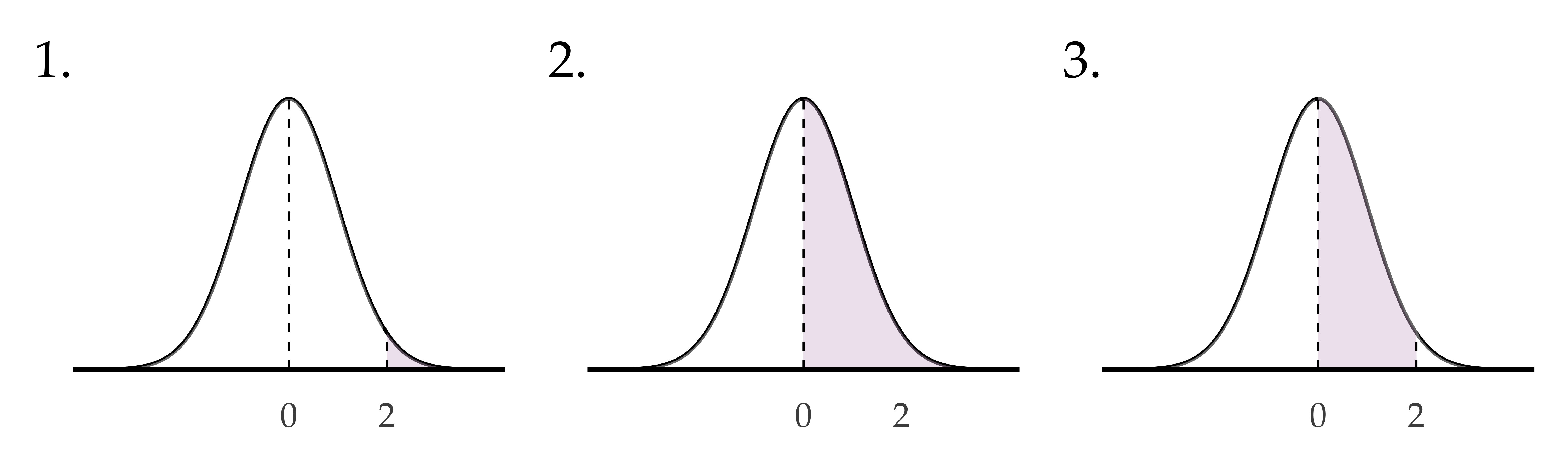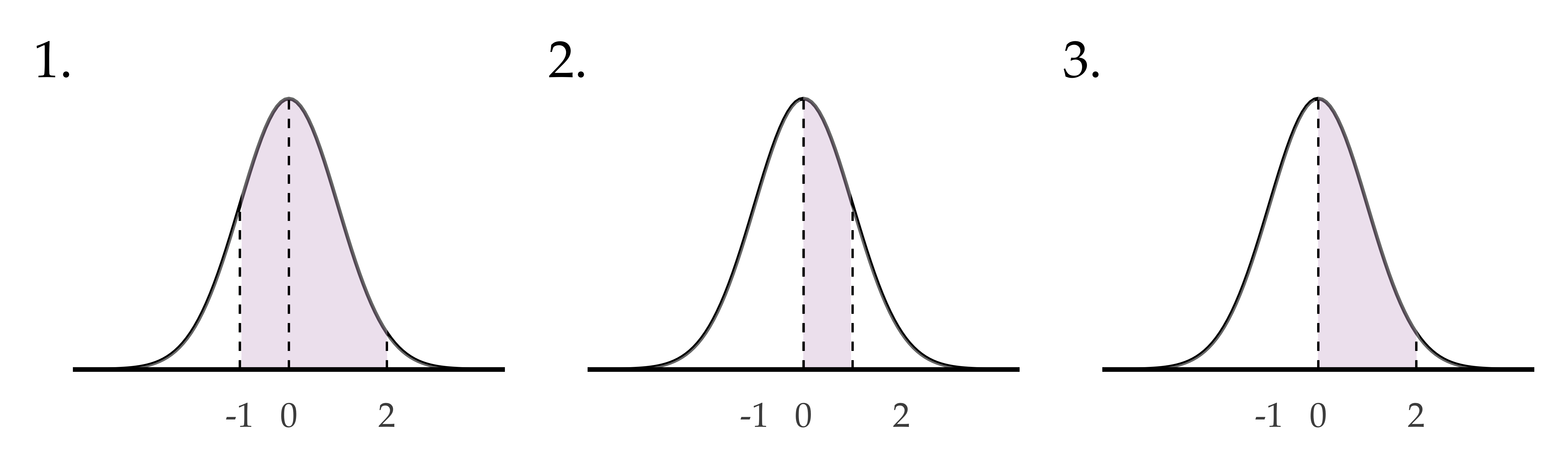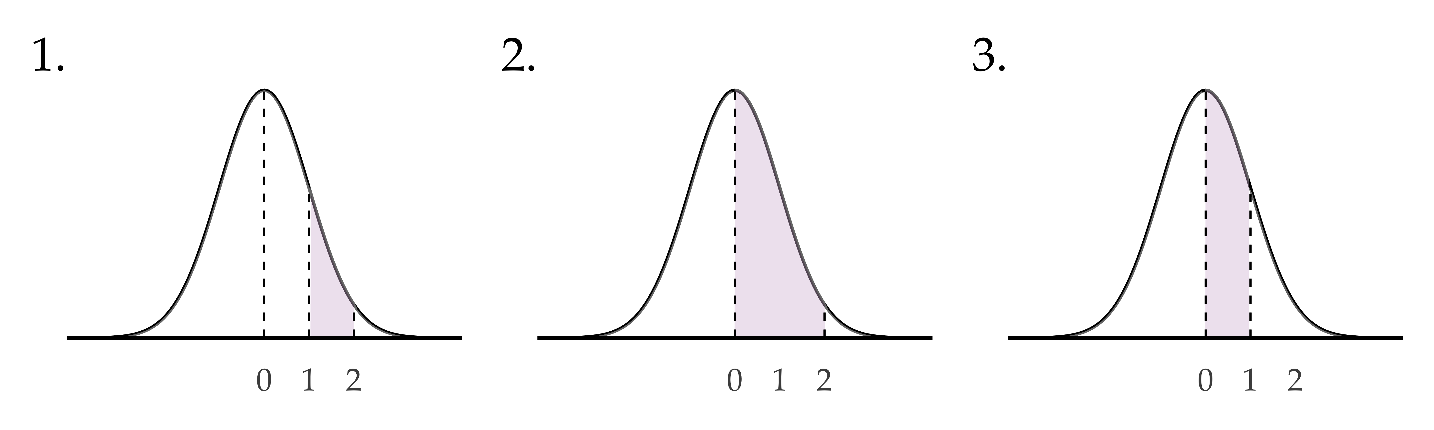 4. Find the probability that \(Z\) takes values bewteen 1 and 2.