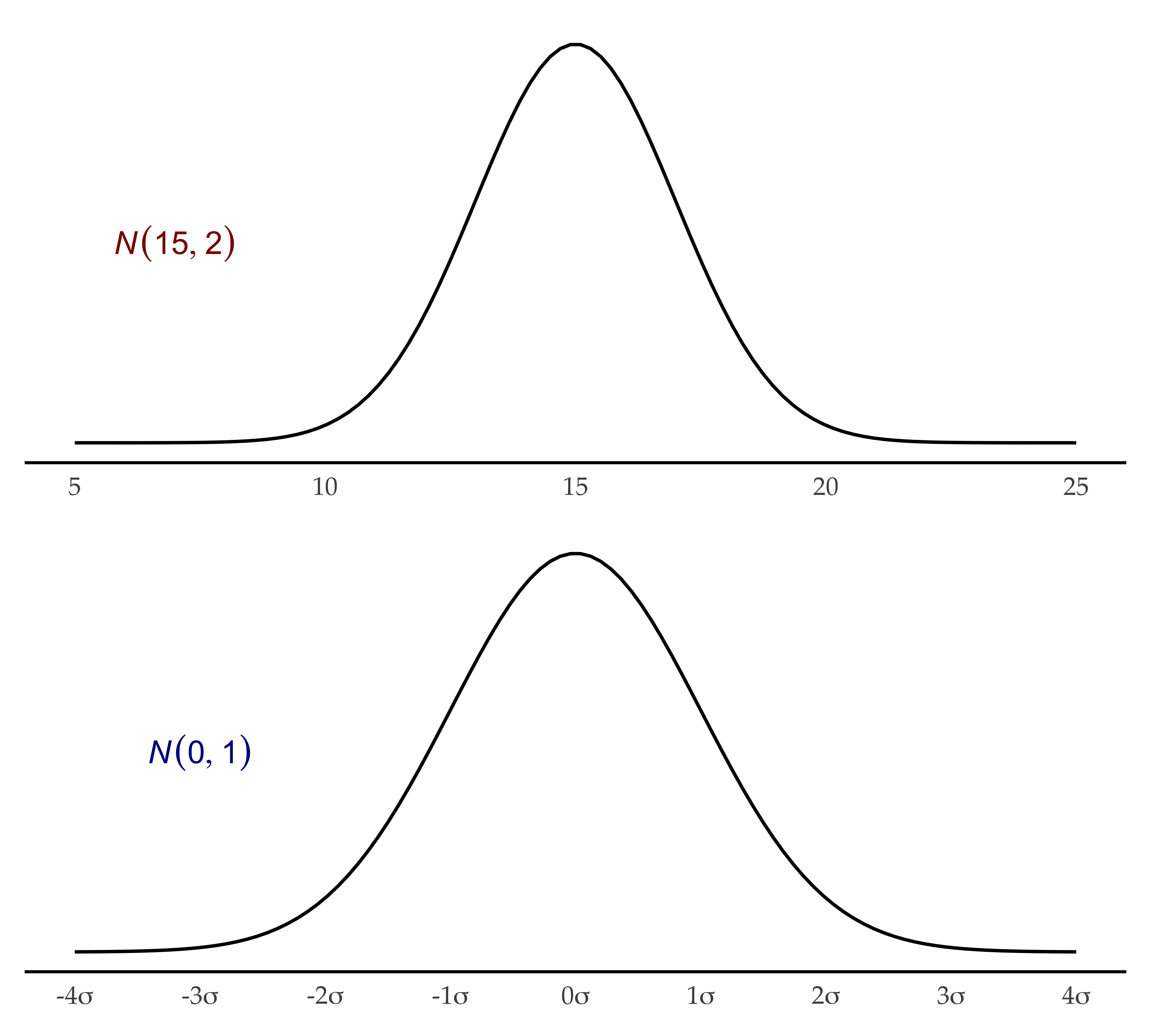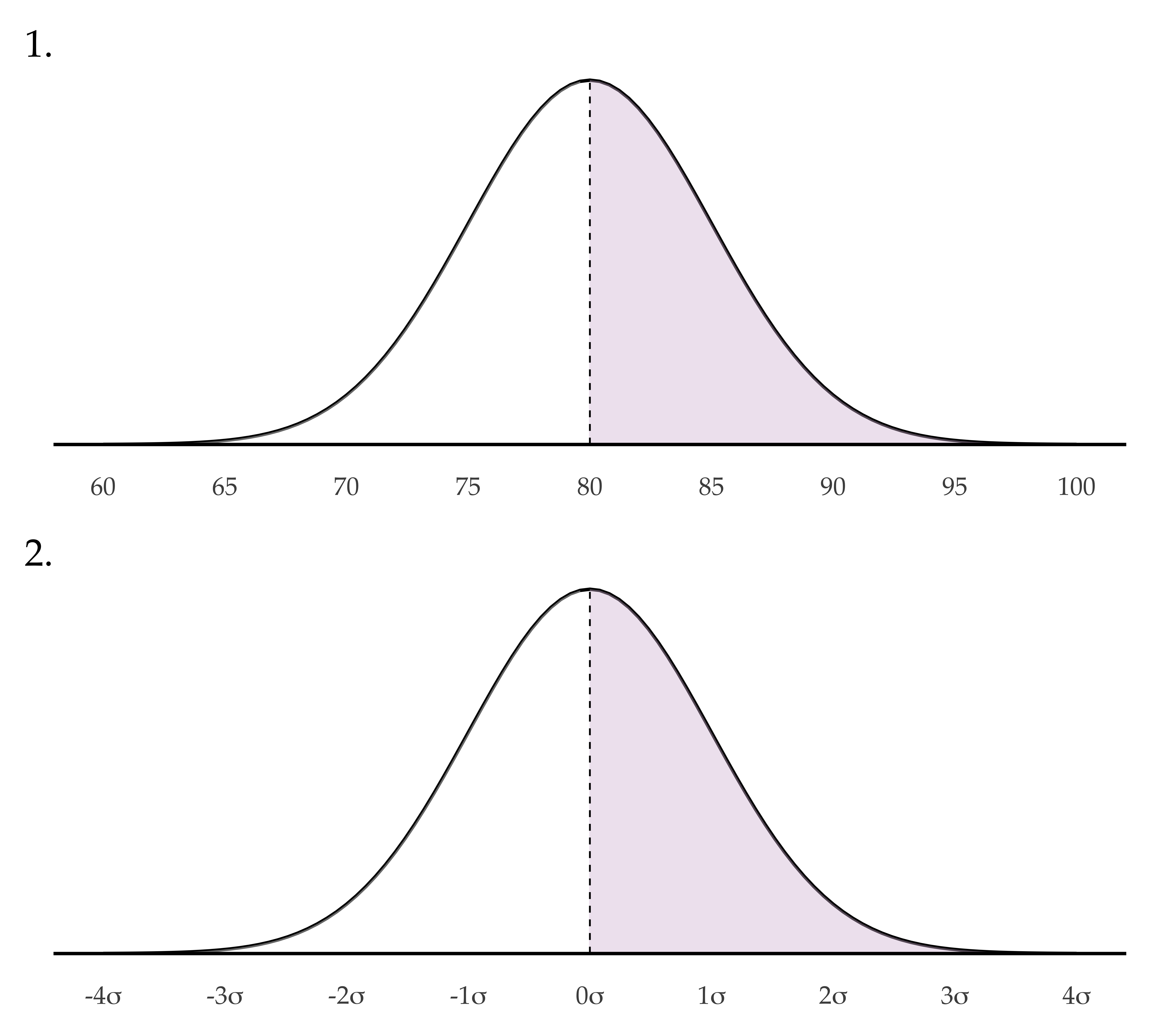 \[\color{red}{z} = \frac{\color{blue}{\bar{x}} - \color{green}{\mu}}{\color{purple}{\sigma} \div \color{orange}{\sqrt[]{\color{grey}{n}}}}\]