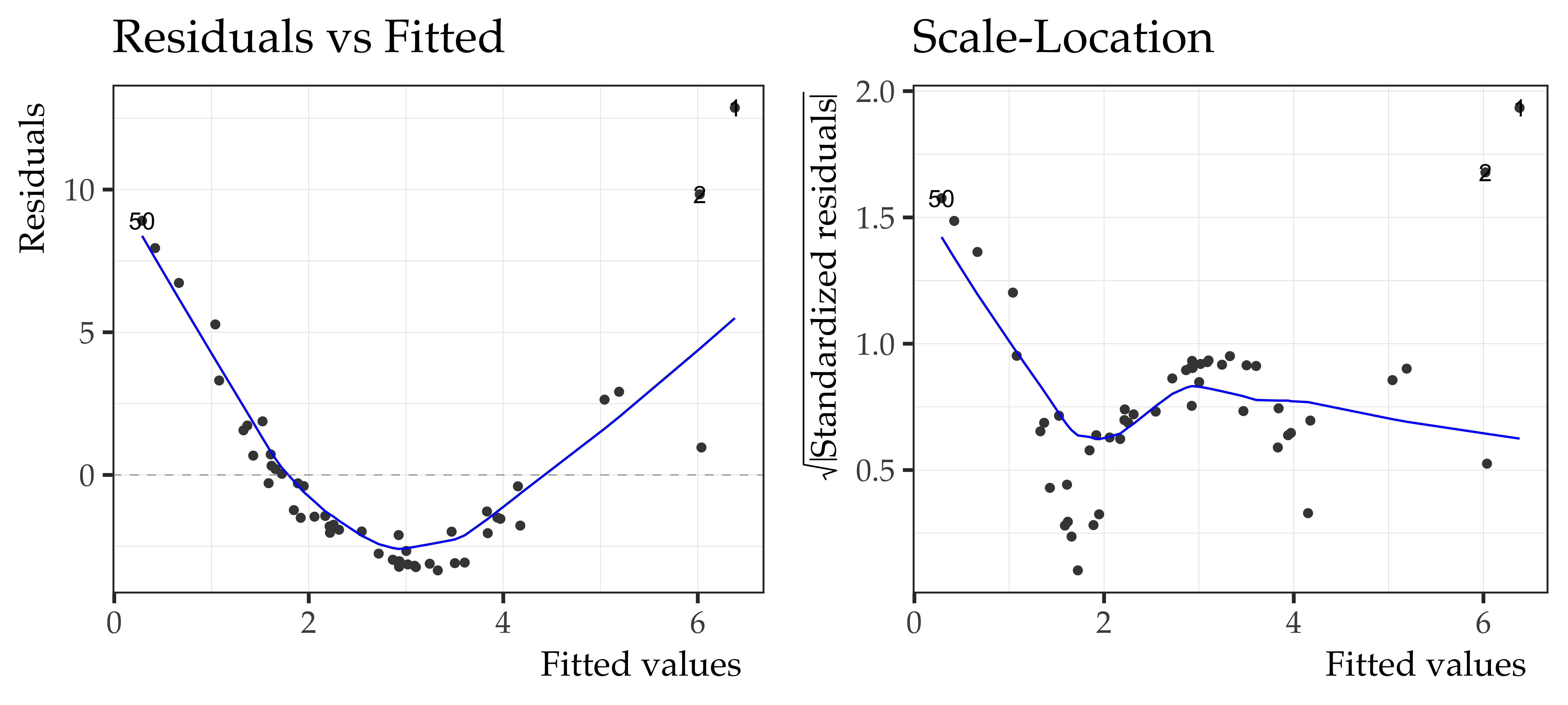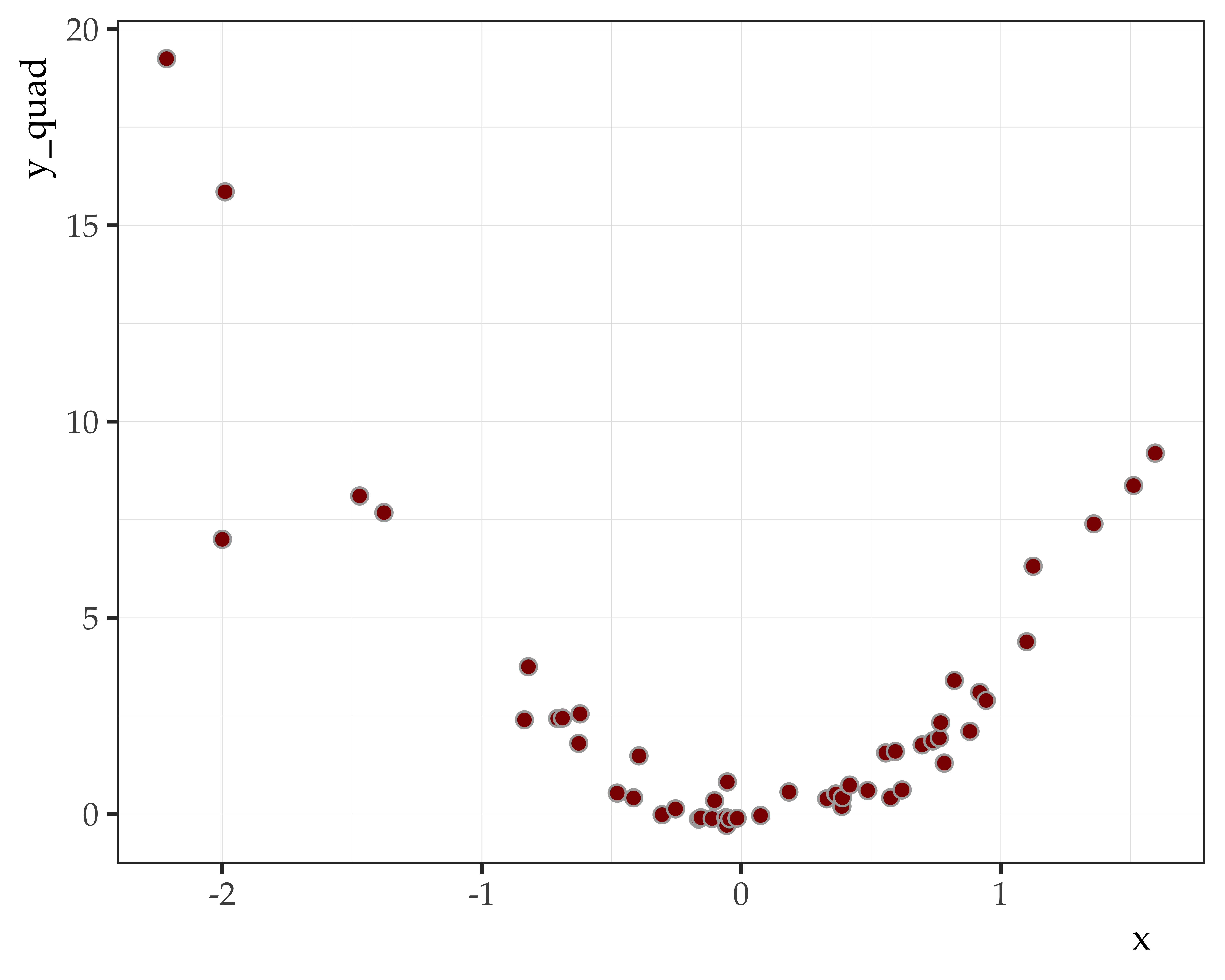 ## lm(formula = y_quad ~ x, data = assumptions_data)
