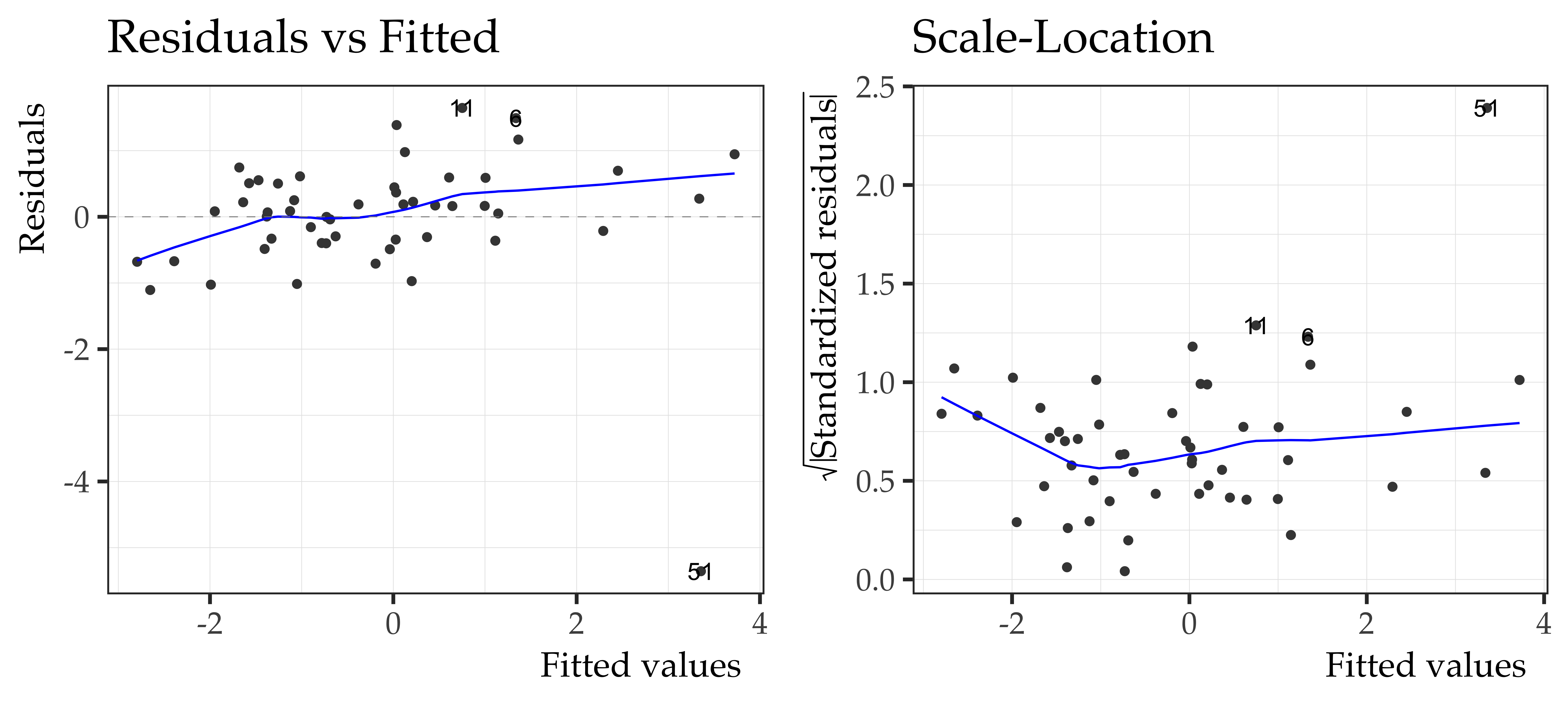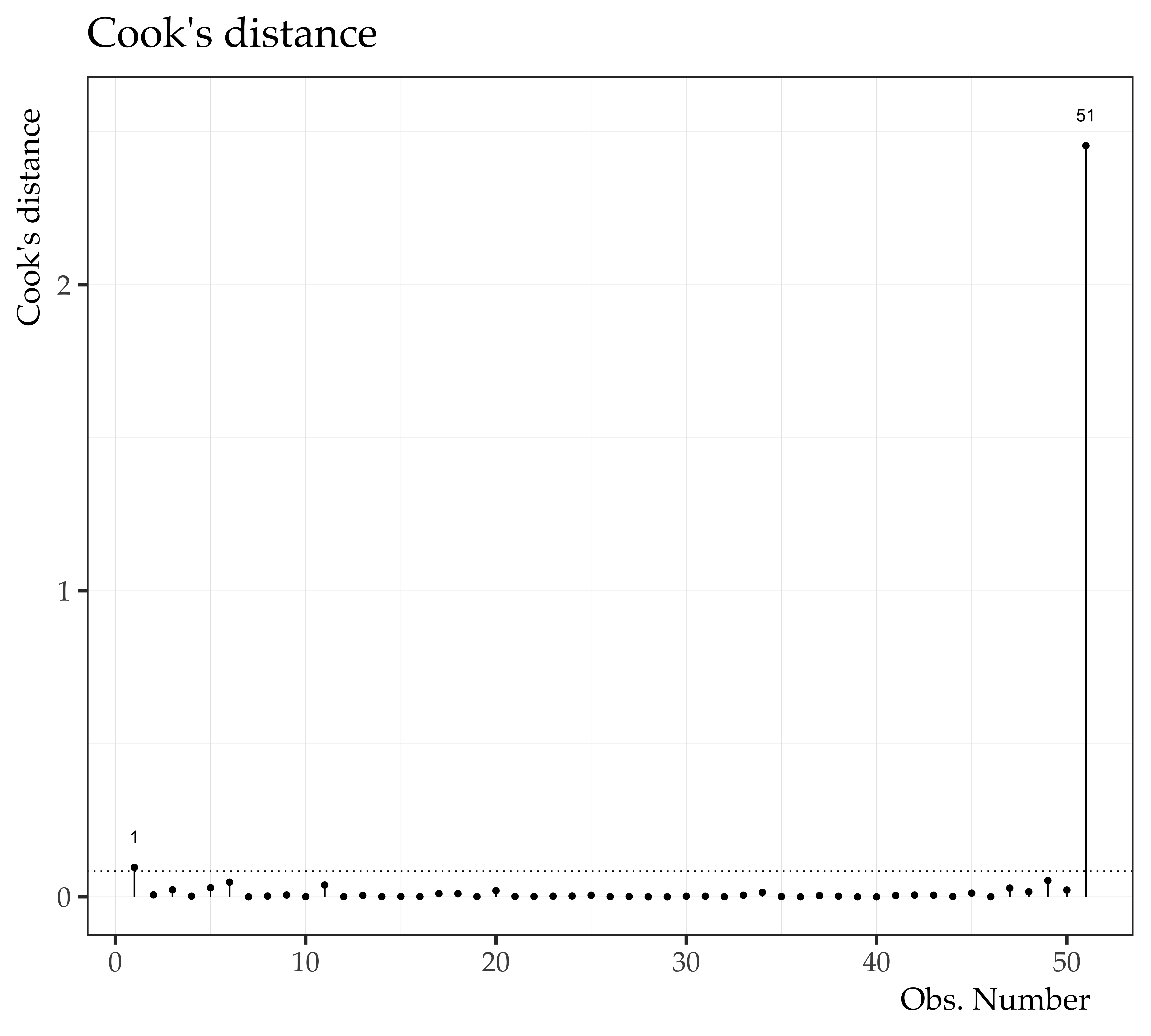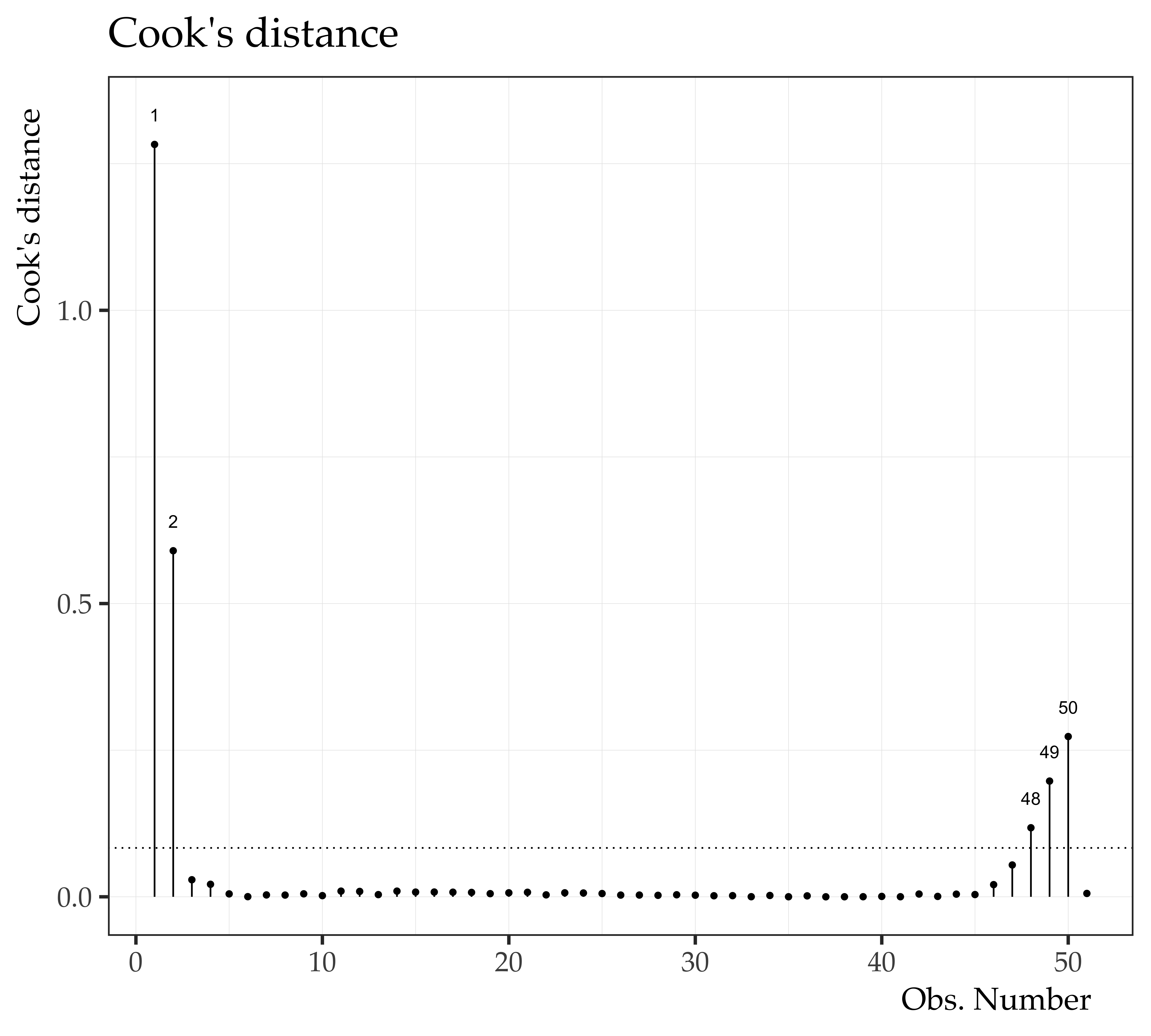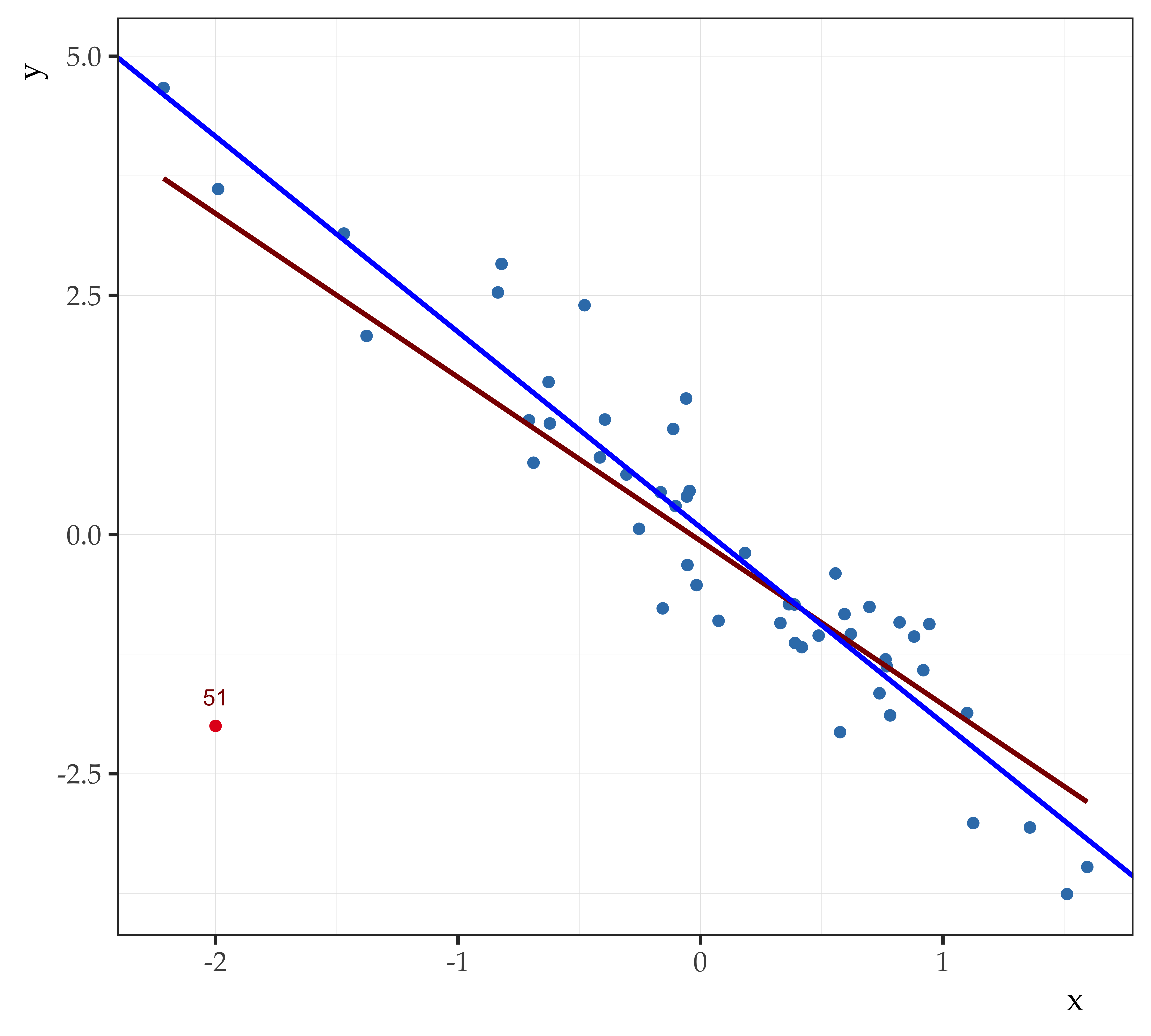 ## lm(formula = y ~ x, data = assumptions_data[1:50, ])
